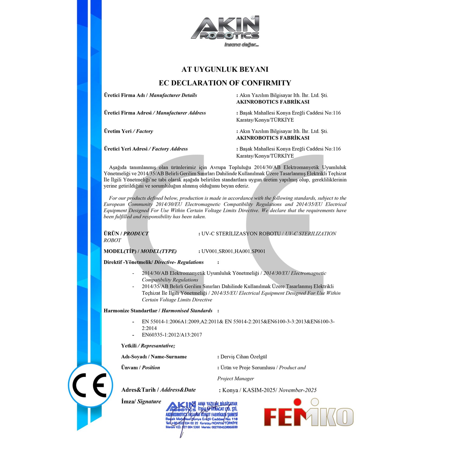 - Robot satışı gerçekleştikten sonra satın alan firma iki (2) yıl süresince yeni çıkan yazılım güncellemelerini (yapay zeka, kontrol yazılım, gömülü yazılım) ücretsiz talep etme hakkına sahiptir.